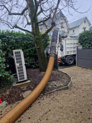 À RENNES, l’Entreprise COURTEL mène actuellement un chantier d’approfondissement de sous-sol pour une maison individuelle, utilisant notre aspiratrice/excavatrice avec ses 35m de tuyaux souples de 25cm de diamètre.